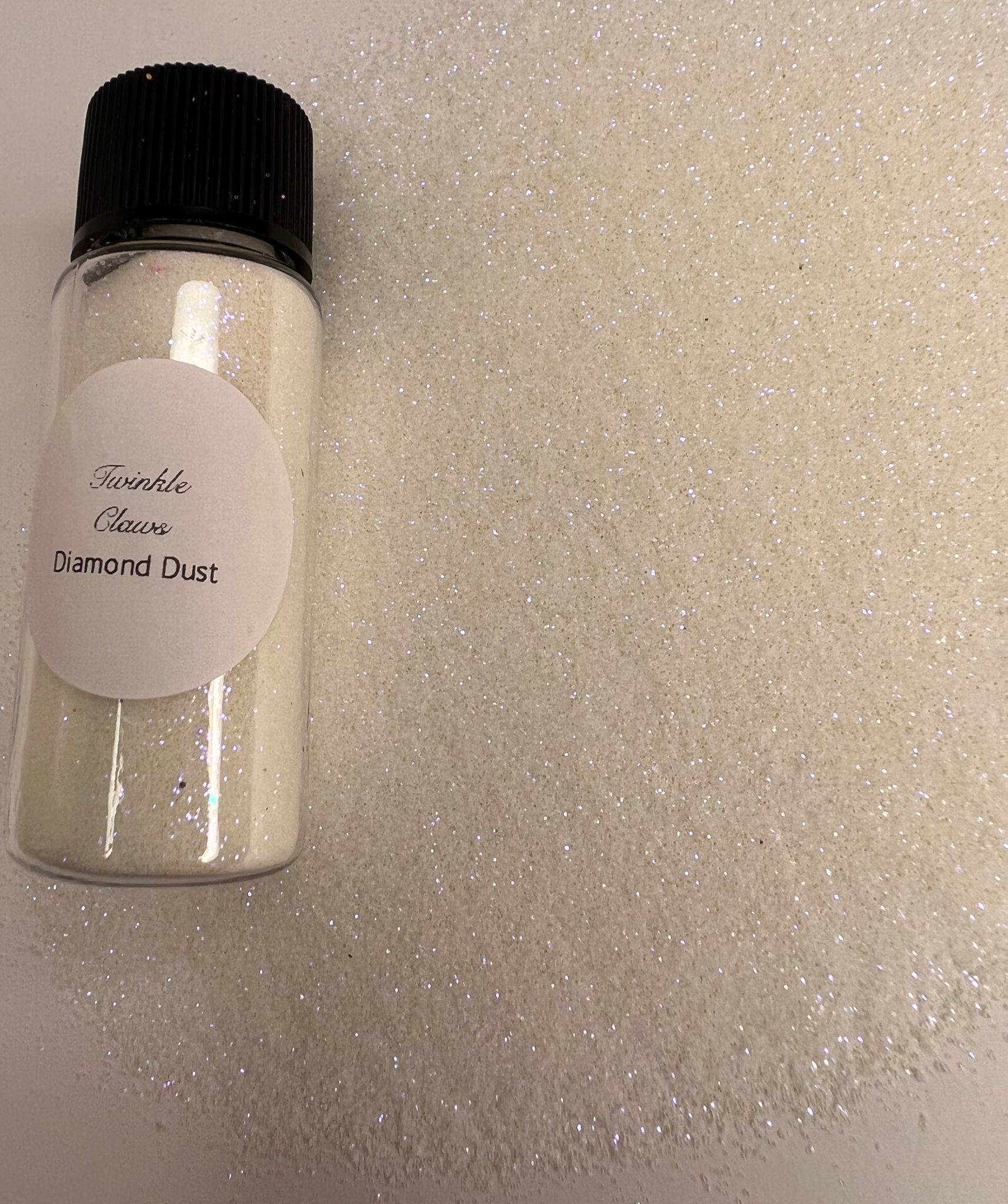 Diamond dust fine glitter is iridescent with lilac shimmer